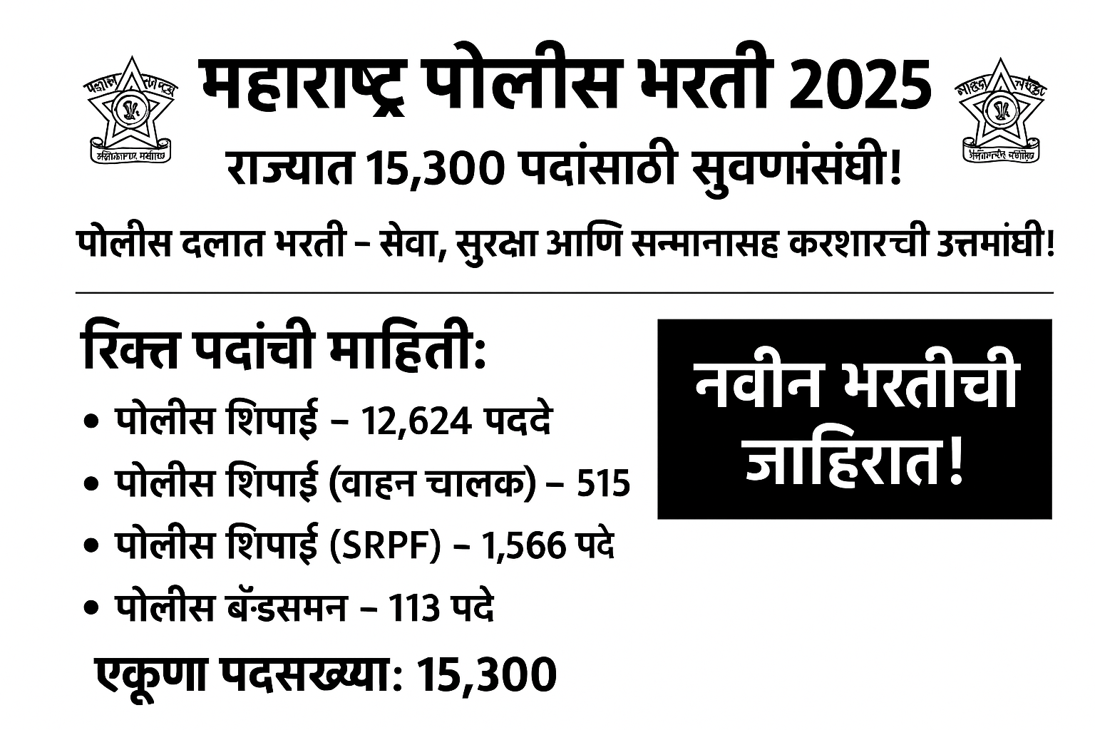 महाराष्ट्र पोलीस भरती 2025; एकूण 15,300 पदांसाठी सुवर्णसंधी!