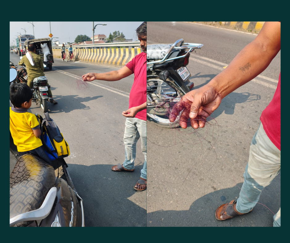 नायलॉन मांज्याचा जीवघेणा धोका; अकोट रोडवर पिता–पुत्र बचावले!