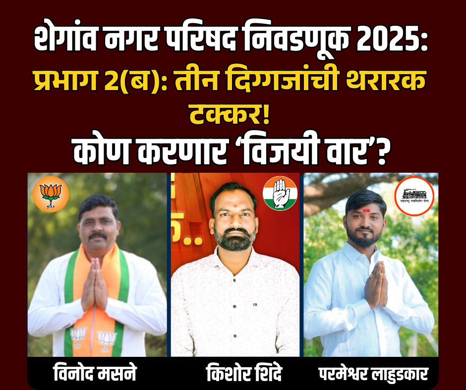 शेगांव नगरपरिषद निवडणूक 2025 : प्रभाग क्रमांक 1 (ब) मध्ये चतुर्थस्पर्धा!