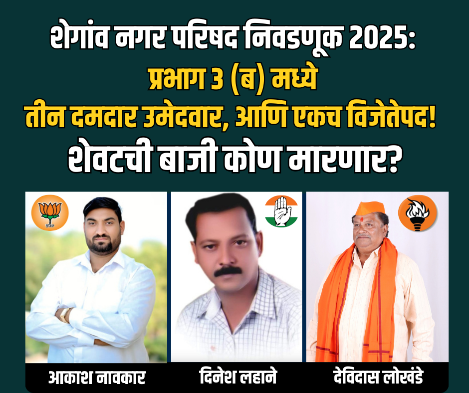 शेगाव नगरपरिषद निवडणूक 2025 : तीन दमदार उमेदवार, आणि एकच विजेतेपद! शेगांव (युवा क्रांती वृत्तसेवा) : येत्या नगरपरिषद निवडणुकीत प्रभाग क्रमांक 3 (ब) हा ...
