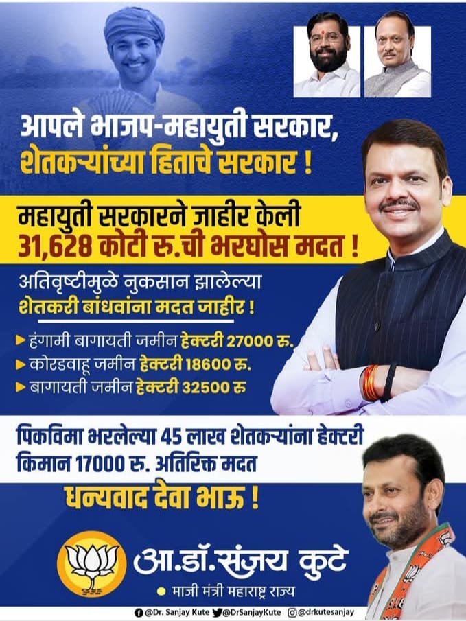 अतिवृष्टीग्रस्त शेतकऱ्यांसाठी राज्य सरकारकडून ३१ हजार ६२८ कोटींचे पॅकेज!